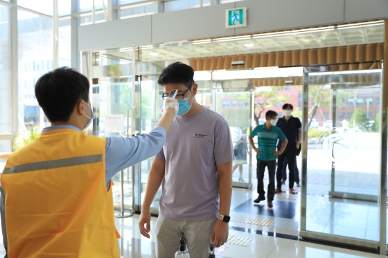 또한 자체 방역 계획에 따라 캠퍼스 전 건물에 지정된 출입구로만 출입을 허용하고, 학생과 교직원들의 왕래가 잦은 종합강의동, 생활관, 대학본부 등에 비접촉 발열체크와 열화상카메라를 배치했다. 외부인은 QR코드 출입명부 작성 후 출입이 가능하다.
