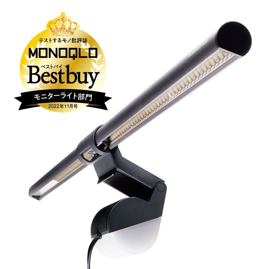 作業スペースだけを照らし、明るすぎないから目が疲れず、集中力が保てるモニターライト。BenQの「ScreenBar Halo」は、パソコンでの作業はもちろん、影がうっすらとしか出ないため、ノートへの筆記や資料確認といった作業中も集中力を削がれません。さらに素晴らしいのが、リモコンの使いやすさ。照度・色温度ともに手元で無段階調整できるので、仕事を中断する必要もありません。