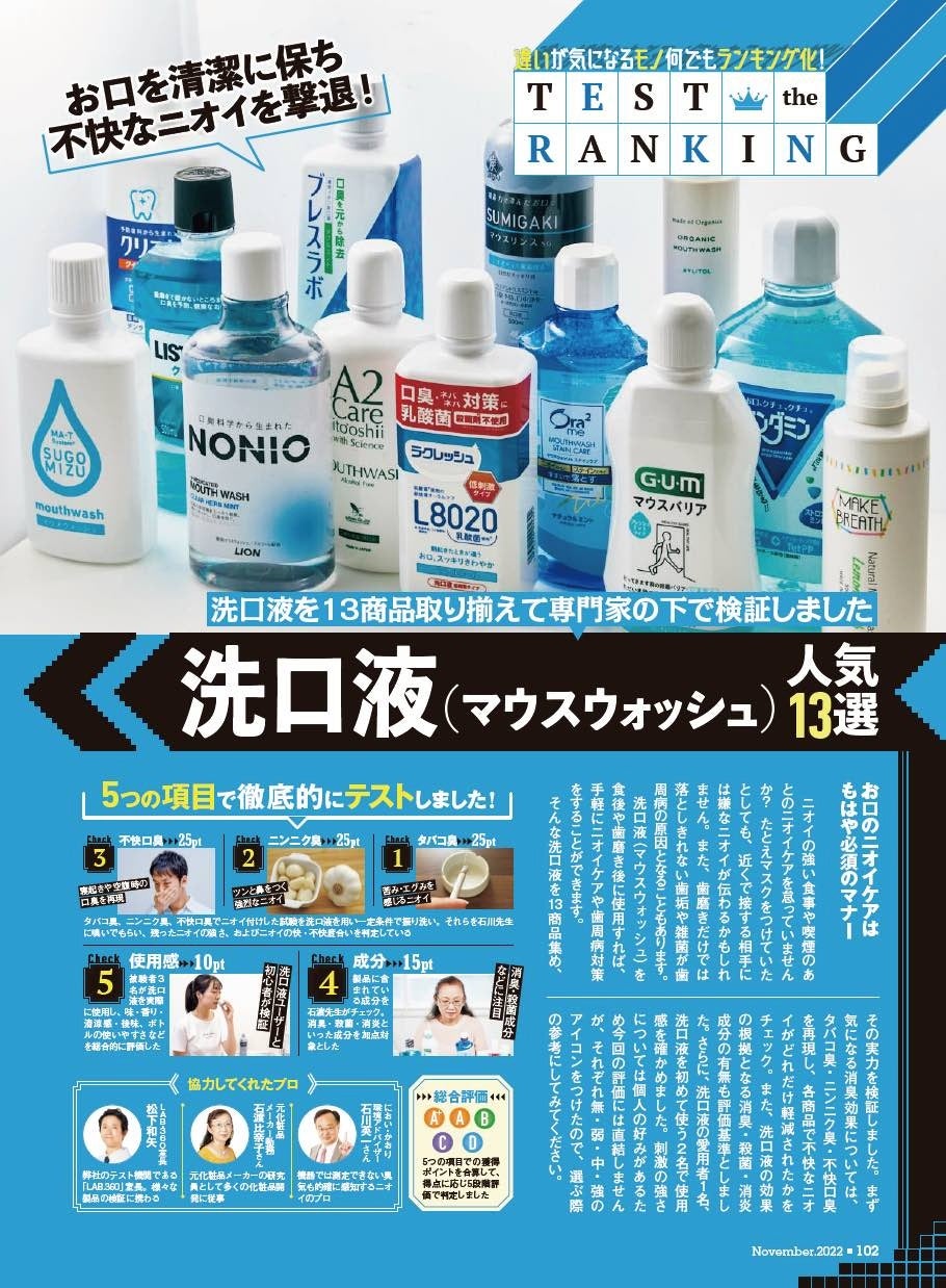 ニオイの強い食事や喫煙のあとのニオイケアを怠っていませんか? 洗口液(マウスウォッシュ)を食後や歯磨き後に使用すれば、手軽にニオイケアや歯周病対策をすることができます。そんな洗口液を13商品集め、その実力を検証しました。