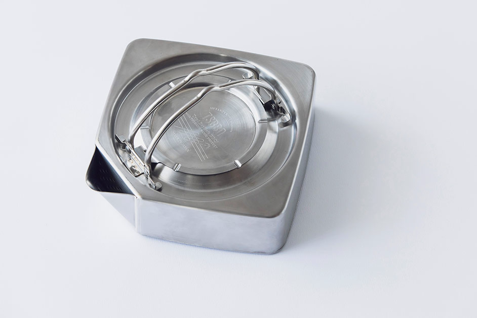 洋食器や金物・刃物の生産が盛んな新潟・燕三条から、スタイリッシュなバーベキュースタイルを発信するアウトドア用品ブランド「TSBBQ」。コンパクトに収まるスクエアケトルは、高さ約5cmという薄さながら、容量は700mlとたっぷり。