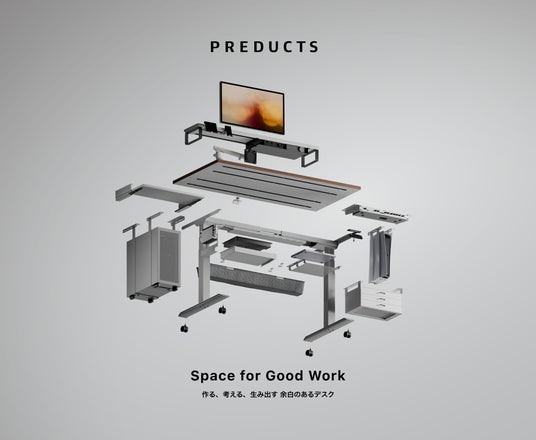 本展に際しPREDUCTSは、GAMING、CRAFT、DTM、DRAWINGという4つのユースケースを表現したコンセプトモデル「TYPES」を展示。各ブランドのプロダクトとともに、PREDUCTS DESKの新たな活用可能性をご提案します。