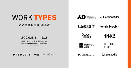 PREDUCTS株式会社(本社:東京都港区、代表取締役:安藤剛)は、2024年5月11日より六本木のNew Stand Tokyo Galleryにて、いい仕事を生む、道具展『WORK TYPES』を共同で開催いたします。